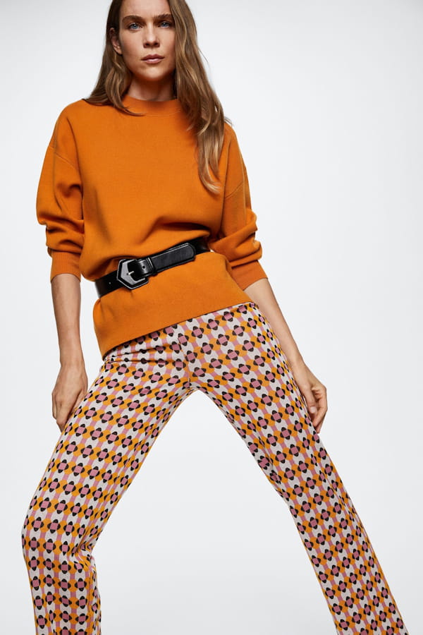 Pantalon à jacquard géométrique orange de Mango