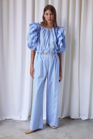 Pantalon bleu à rayures blanches "Zoe" de The Label Edition