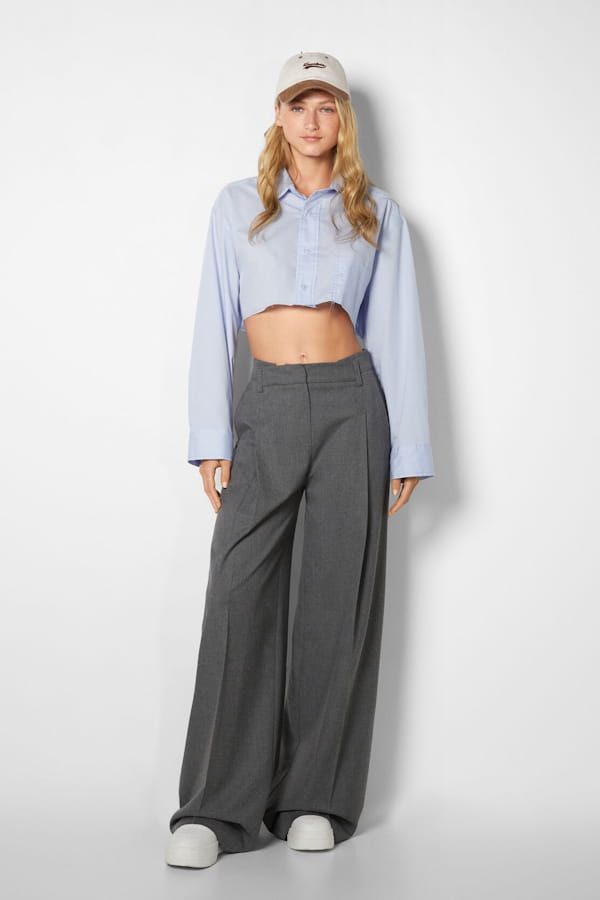 Pantalon coupe tailleur jambe large gris anthracite de  Bershka