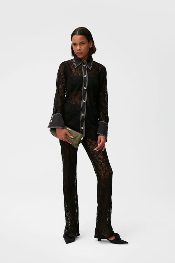 Pantalon évasé en dentelle noir de Ganni