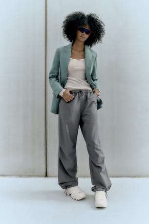 Pantalon parachute gris avec élastiques aux chevilles de Zara