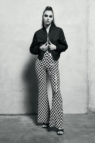 Pantalon blanc et noir à motif damier à sequins de Jennyfer
