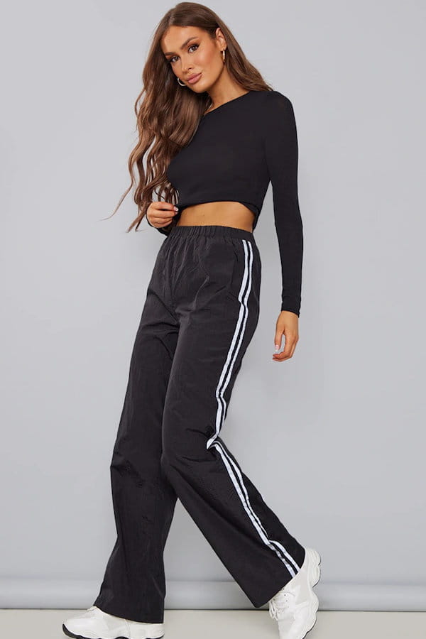 Pantalon noir cargo style parachute à bandes latérales de PrettyLittleThing