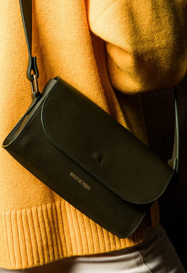 Sac à main en cuir vert kaki "Gabrielle" de Valet de Pique