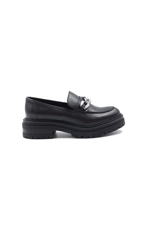 Mocassins crantés en cuir noir et chaîne argentée de Jules & Jenn