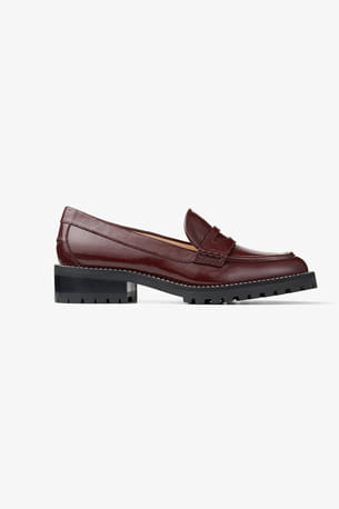 Mocassins en cuir naplak bordeaux ornés de cristaux ©  Jimmy Choo