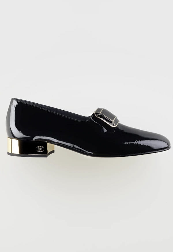 Mocassins en veau verni et métal noir à boucles de Chanel