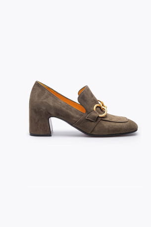 Mocassins en veau velours avec talons et maillons de chaîne © Jacques Loup