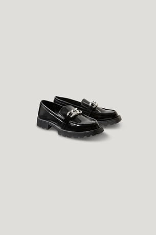 Mocassins noirs vernis à chaîne argentée et semelles crantées de C&A