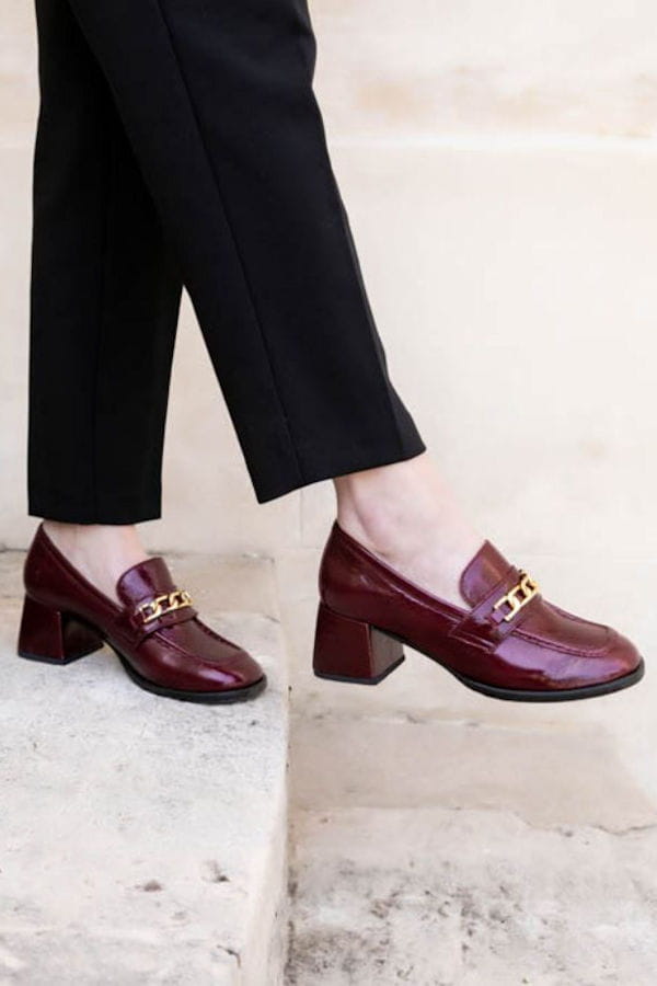 Mocassins en cuir brillant effet froissé bordeaux "Eugenia" de Maison Toufet