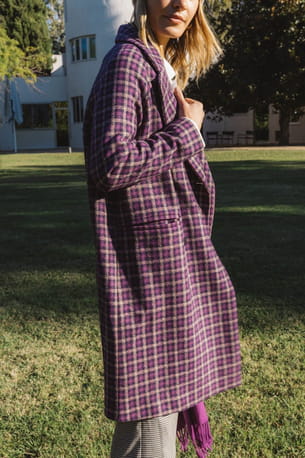 Manteau à carreaux violets en laine recyclée "Lenny" de Balzac Paris