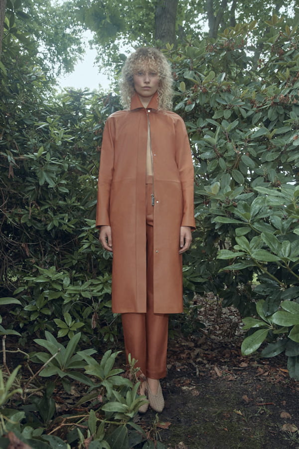 Manteau camel en cuir d'agneau plongé "Mac" de Maison Ullens