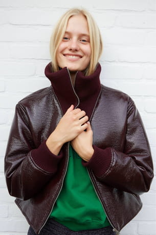 Manteau en vinyle bordeaux © Roseanna