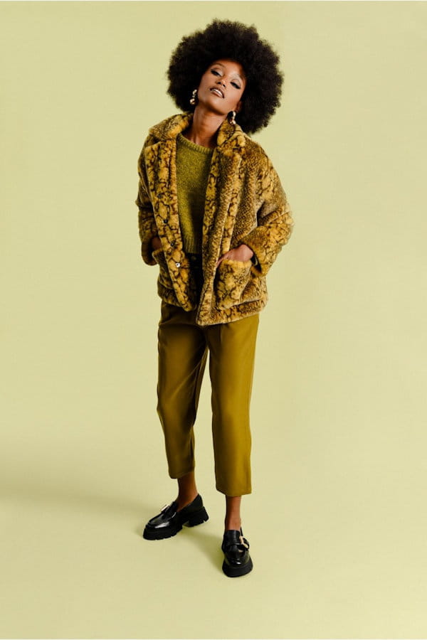 Manteau jaune court en fausse fourrure de Molly Bracken