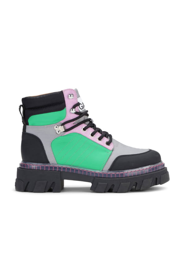 Bottines de randonnée vert et noir à lacets de Ganni