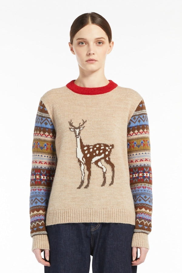 Pull de Noël en alpaga et laine motif biche de Max Mara