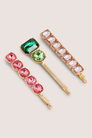 Barrettes en métal et pierres en verre rose et vert de Boden