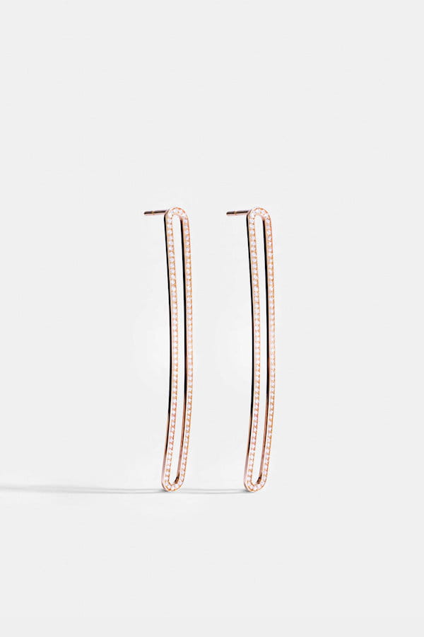 Boucles d'oreilles en or rose longues pavées "Étreintes" de JEM