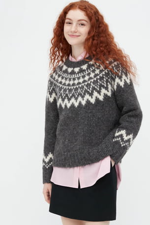 Pull gris à motifs