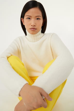 Pull blanc à col roulé en laine de Colmar