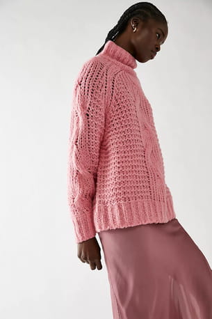 Pull en grosse maille rose "Leyland" de Loveshackfancy sur Free People