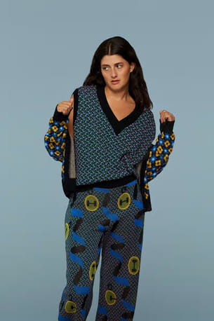 Pull sans manches vert foncé à motif de Pierre Marie x Monoprix