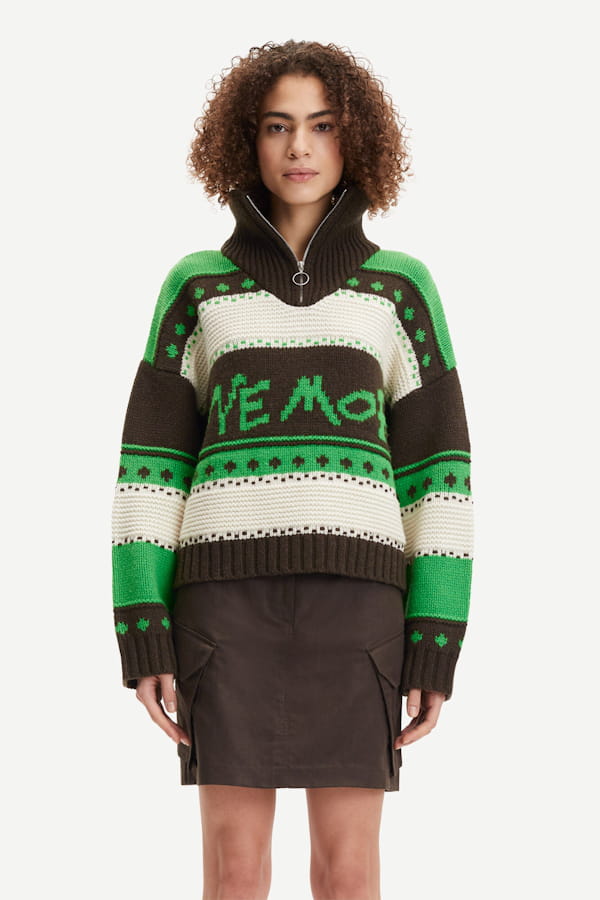 Pull tricoté vert et marron © Samsøe & Samsøe