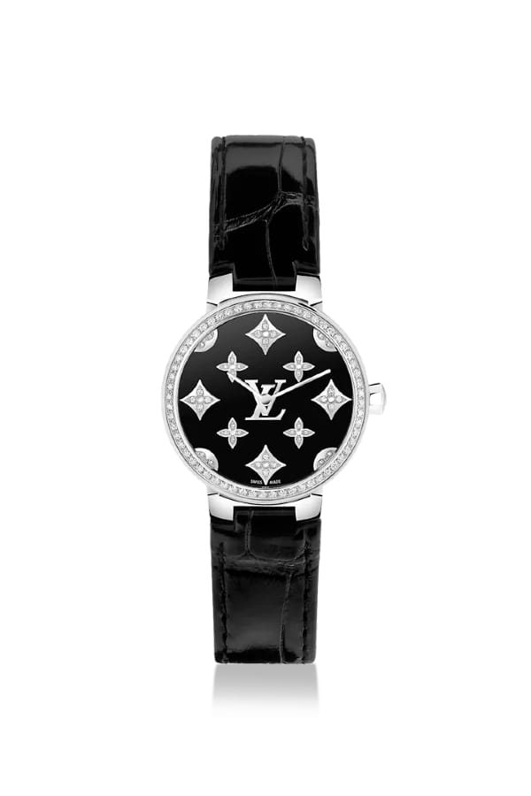Montre noir et argent monogramme à diamants de Louis Vuitton