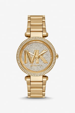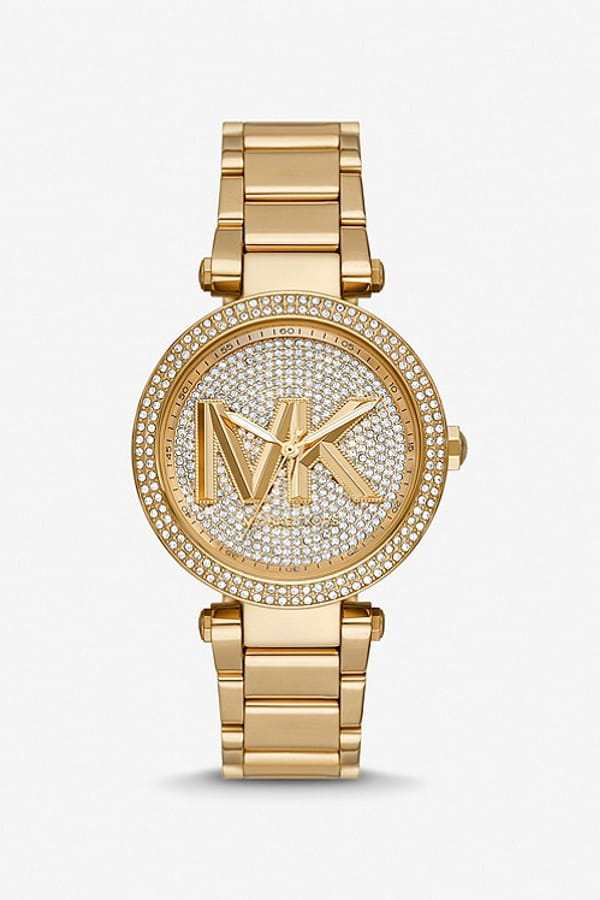 Montre dorées à logo et à pierres pavées de Michael Kors