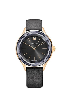 Montre noire en cuir minimaliste de Swarovski