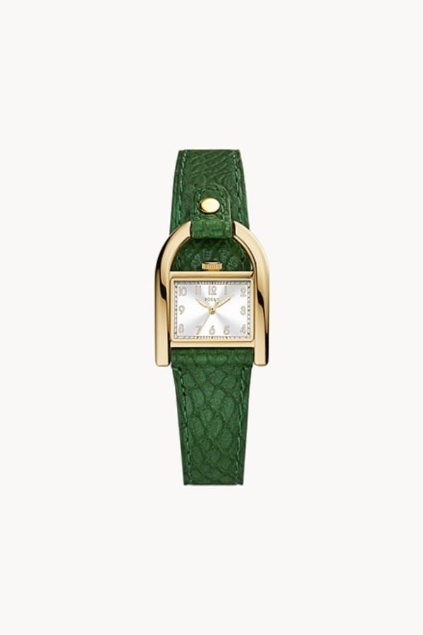 Montre vert et doré à trois aiguilles en cuir ecoresponsable de Fossil