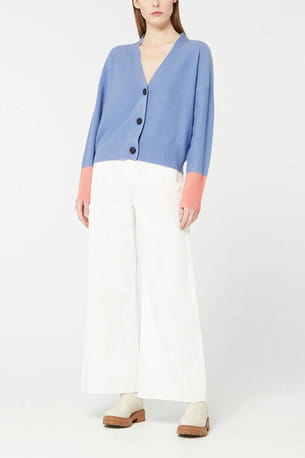Gilet en cachemire bleu et rose "Fabiola" des Galeries Lafayette