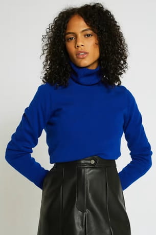 Pull en cachemire à col roulé bleu Klein de Monoprix