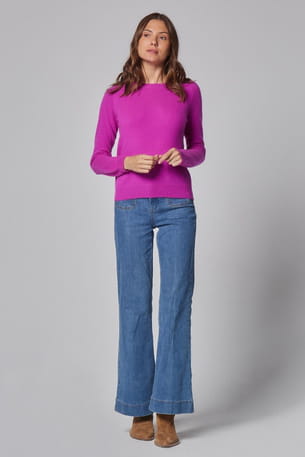 Pull en cachemire magenta à encolure ronde fuchsia de Majestic Filatures