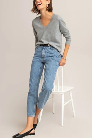 Pull en cachemire à encolure V gris perle de La Redoute Collections