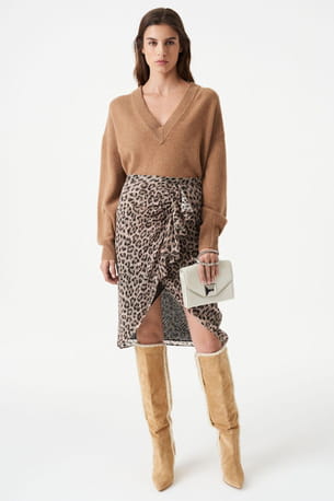 Pull en cachemire à encolure V marron clair "Lilween" d'Iro Paris