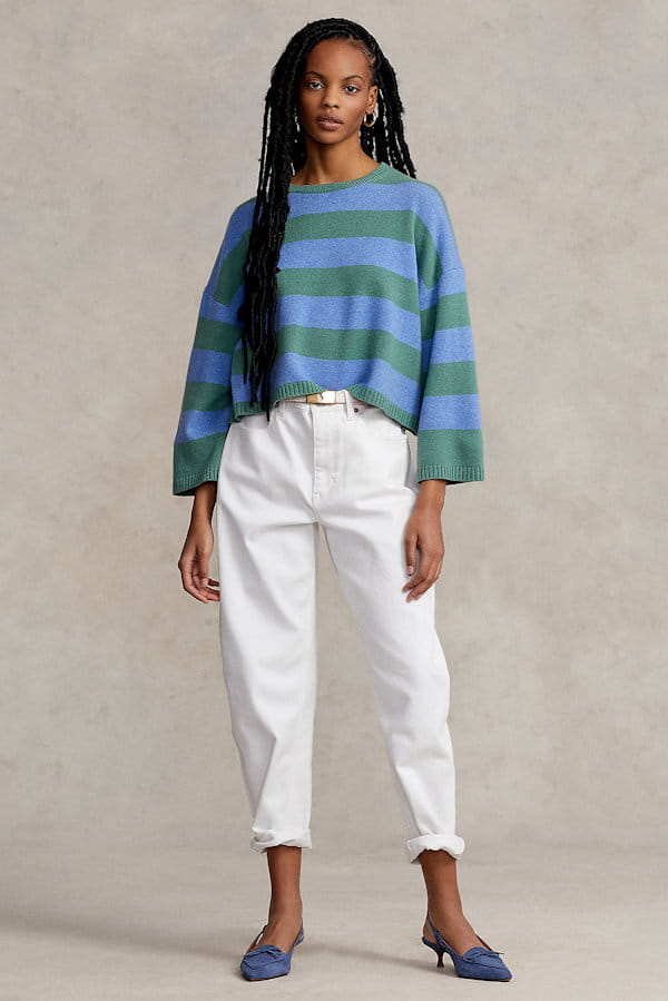 Pull en cachemire à rayures bleu et vert de Ralph Lauren