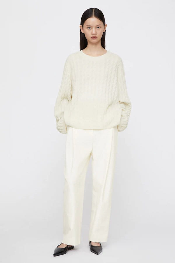 Pull en cachemire blanc tressé à encolure ronde de Totême