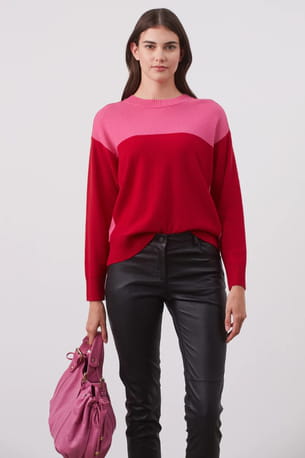 Pull rouge et rose en cachemire color block de Gérard Darel