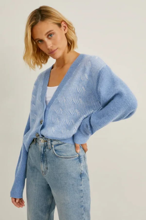Cardigan bleu chiné en cachemire torsadé et côtelé de C&A