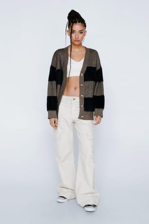 Cardigan oversize imprimé rayures à boutonnage simple marron et noir de Nasty Gal
