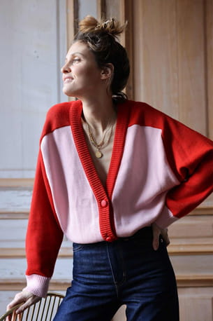 Gilet en laine rose et rouge "Denise" d'Elise Chalmin