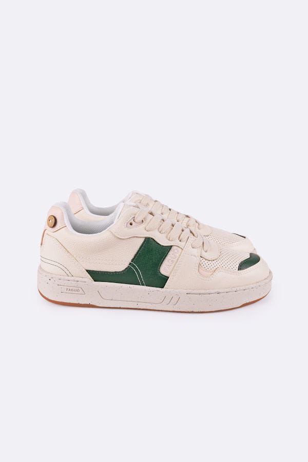 Baskets en cuir recyclé écru et vert "Ceiba" de Faguo