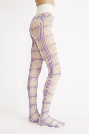 Collants en matériaux recyclés à carreaux mauve et blanc © Swedish Stockings
