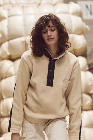 Polaire recyclée col polo écru et marine de Saint James x Later
