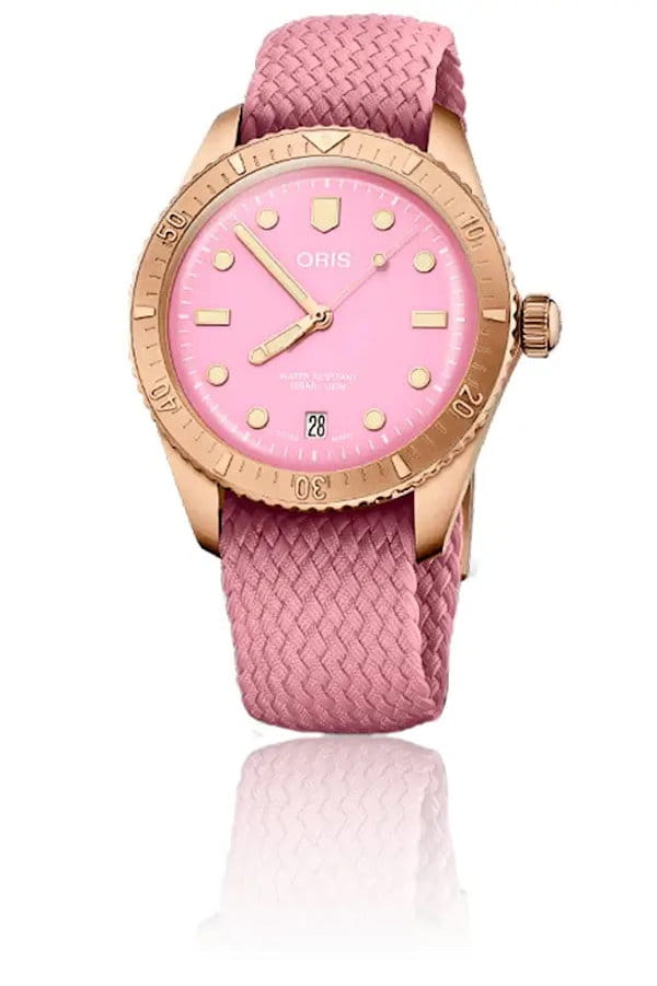 Montre à cadran rose et boîtier doré d'Oris chez O Carat