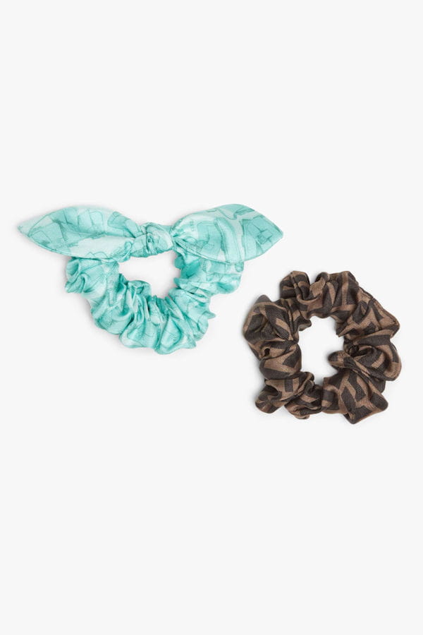 Elastiques à cheveux bleu et marron en soie bio de Fendi