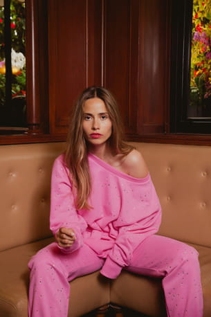 Sweatshirt et jogging à strass rose de Pompom Paris