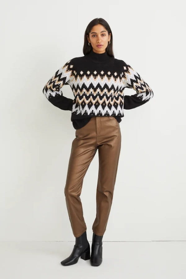 Pullover en matière recyclée à motif noir de C&A