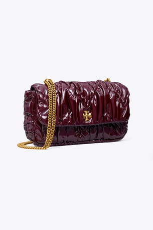 Mini sac à main à rabat en cuir verni ruché "Kira" de Tory Burch